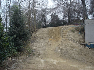 A shed was constructed under the main lawned area, with concealed access from the steps so it